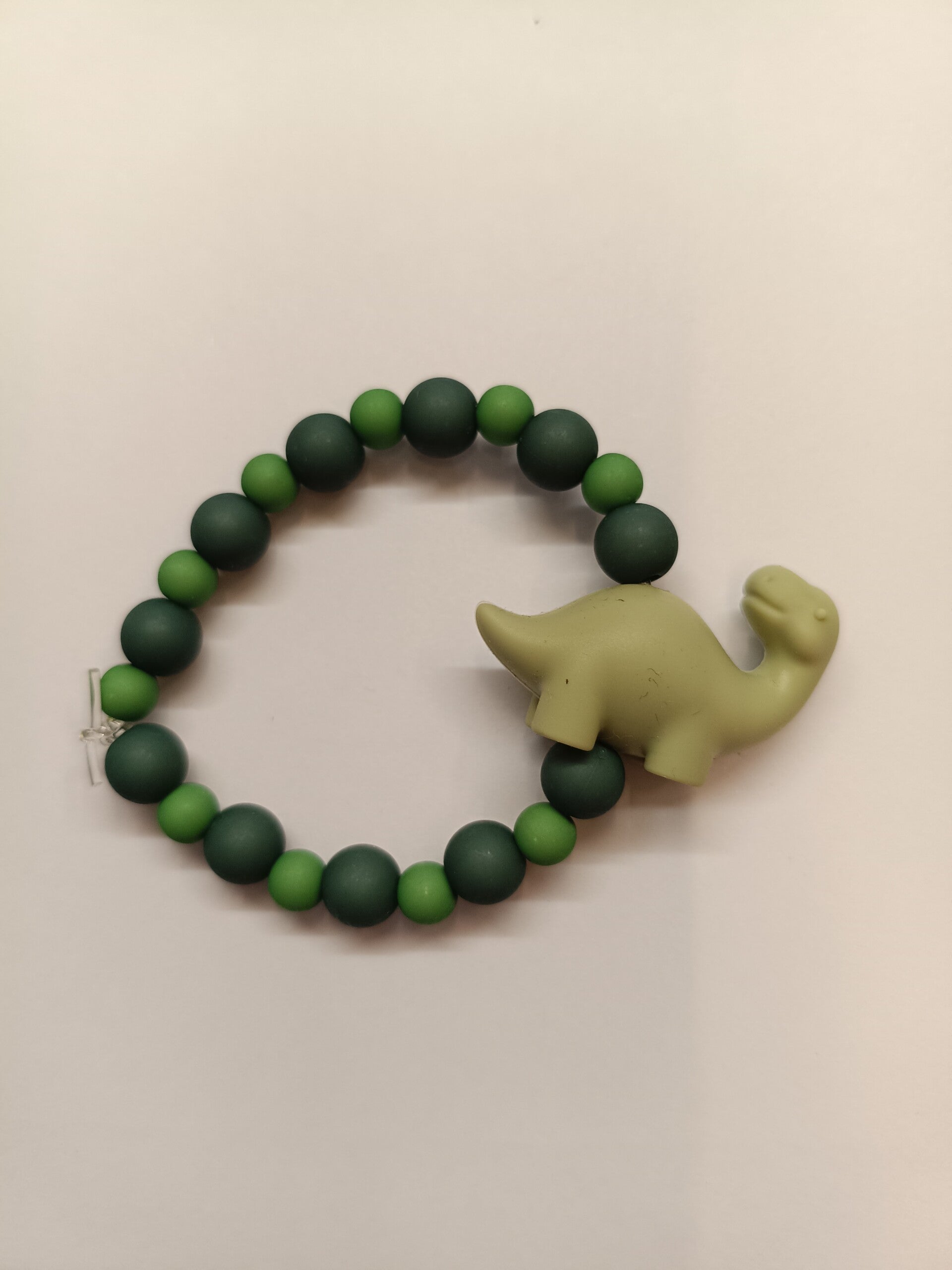 Armband is met acryl kralen gemaakt en de bedels is van bpa vrij siliconen.