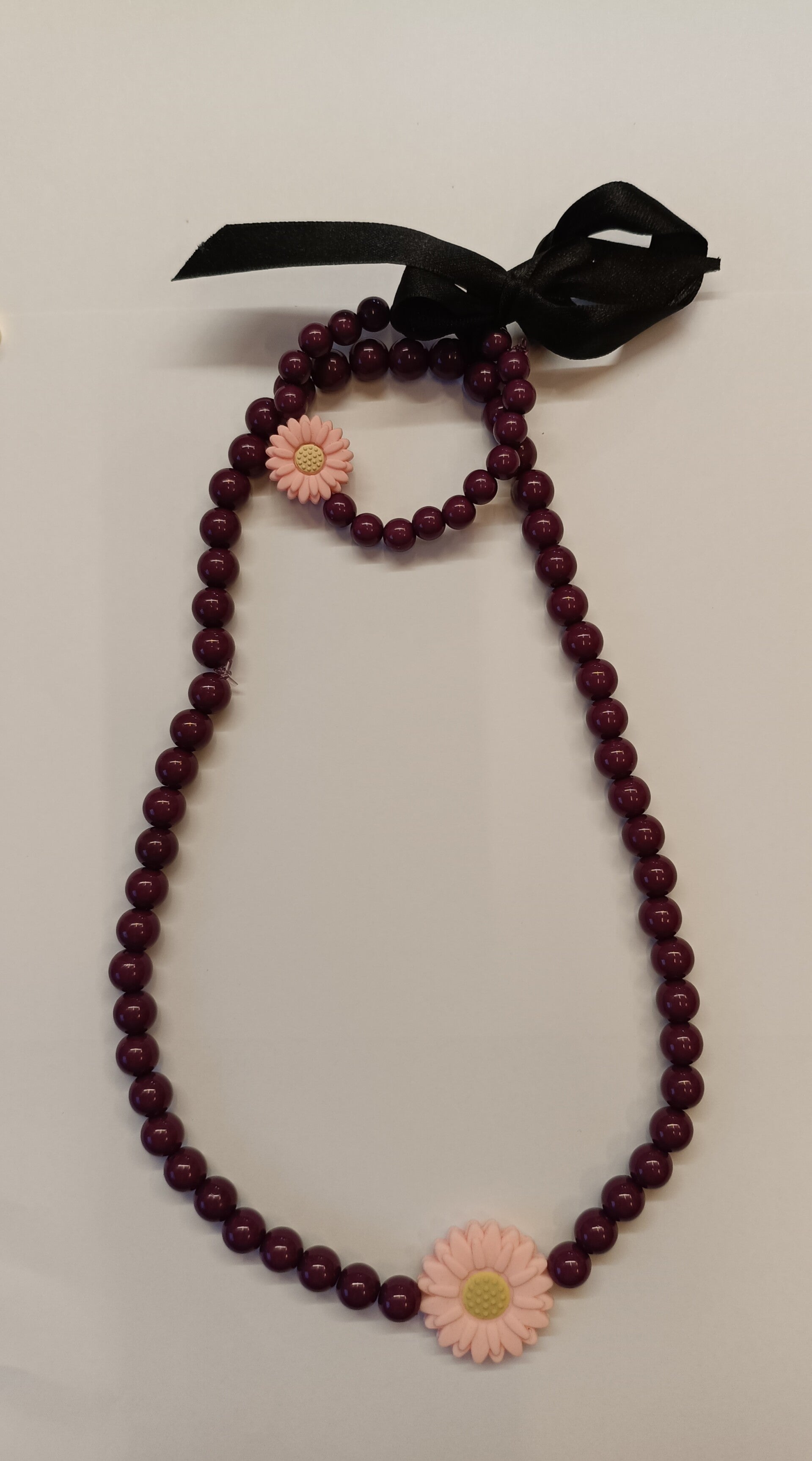 Ketting armband set bloem roze paars